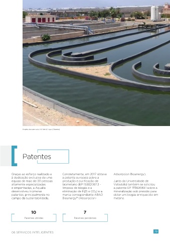 e empenhadas, a Aqualia            limpeza de biogás e a               a patente EP 17382699.1 sobre a