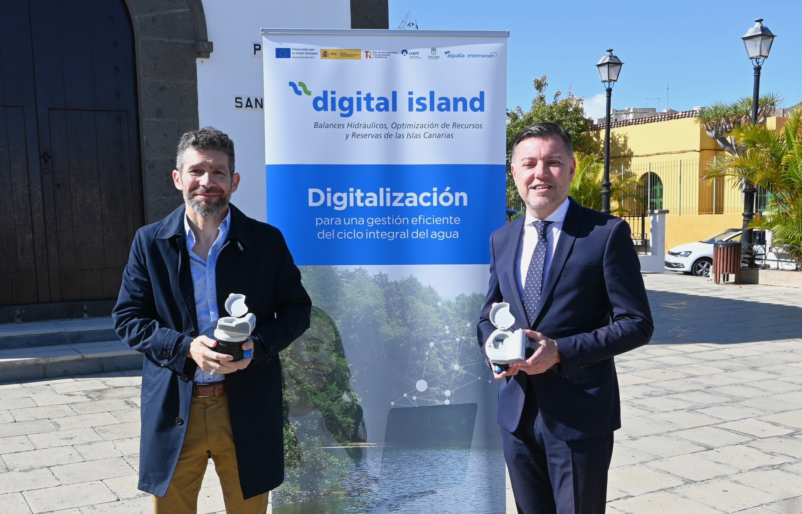 El alcalde de Gáldar, Teodoro Sosa, ha participado esta mañana en la instalación de estos dispositivos, que permitirán disponer de información detallada, normalizada y centralizada de los caudales de agua que circulan por las redes municipales