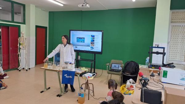 A través de una proyección, los jóvenes alumnos han aprendido de dónde se capta el agua, cómo se potabiliza y se distribuye a través de una extensa red en todo el municipio.
