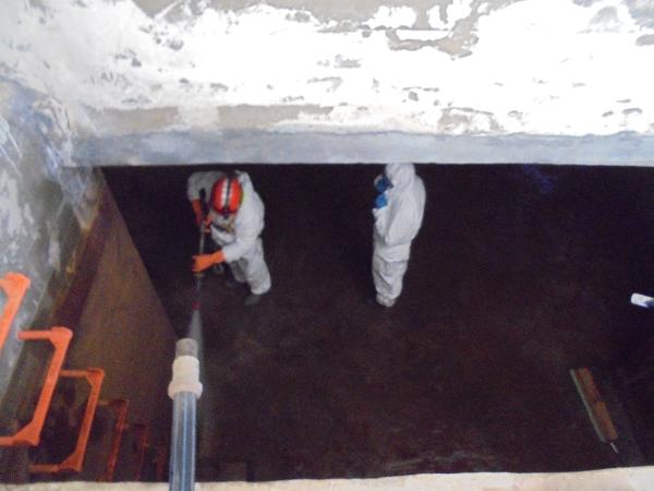 En los trabajos se han empleado medios materiales y humanos para la limpieza y desinfección de más de 1.500 metros cuadrados de superficie del interior de los depósitos,