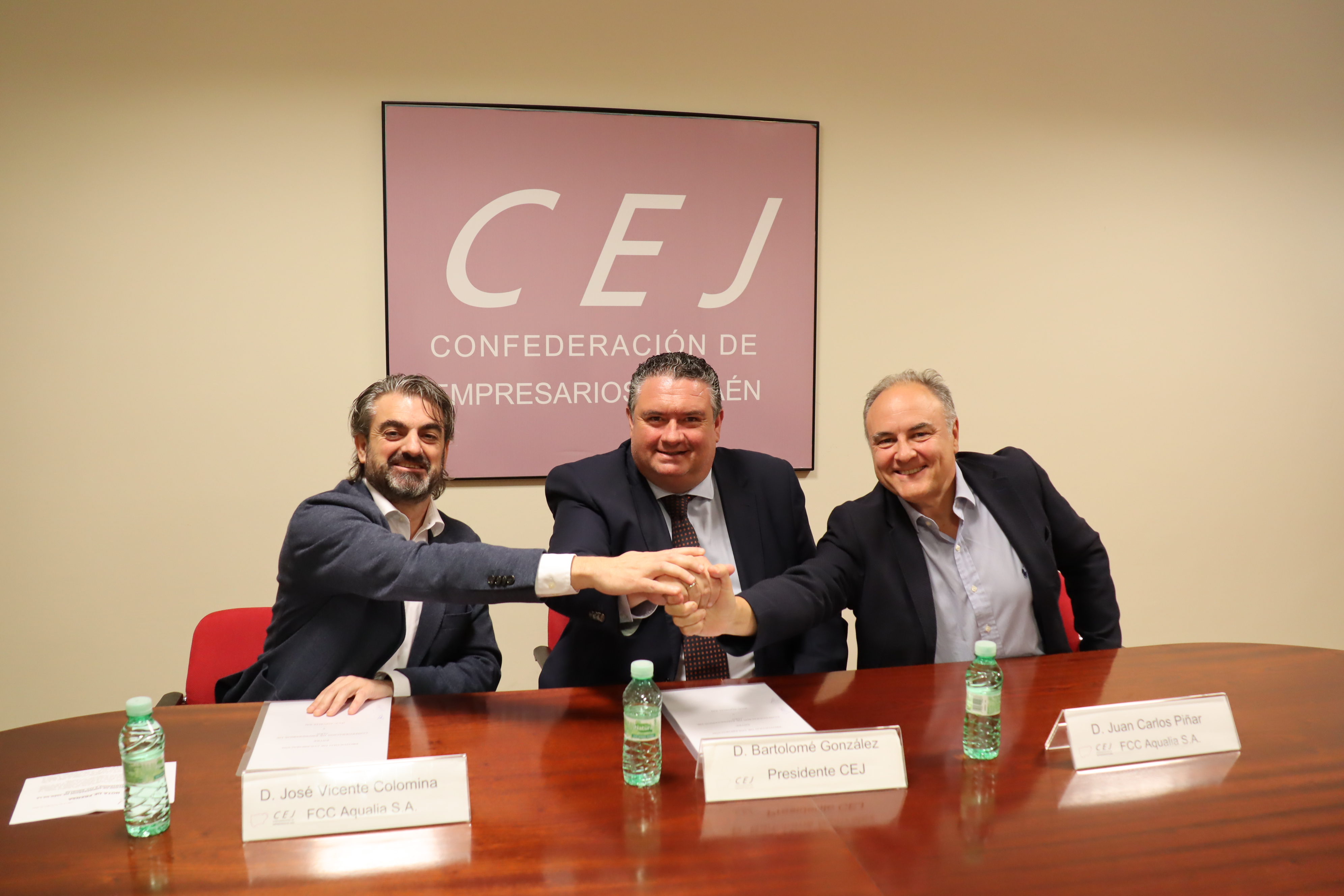 El presidente de la Confederación de Empresarios de Jaén (CEJ), Bartolomé González, y el responsable de Aqualia, José Vicente Colomina, han firmado un convenio de colaboración que formaliza la adhesión a la organización empresarial de la compañía, encargada desde hace 25 años de la prestación del servicio municipal de ...