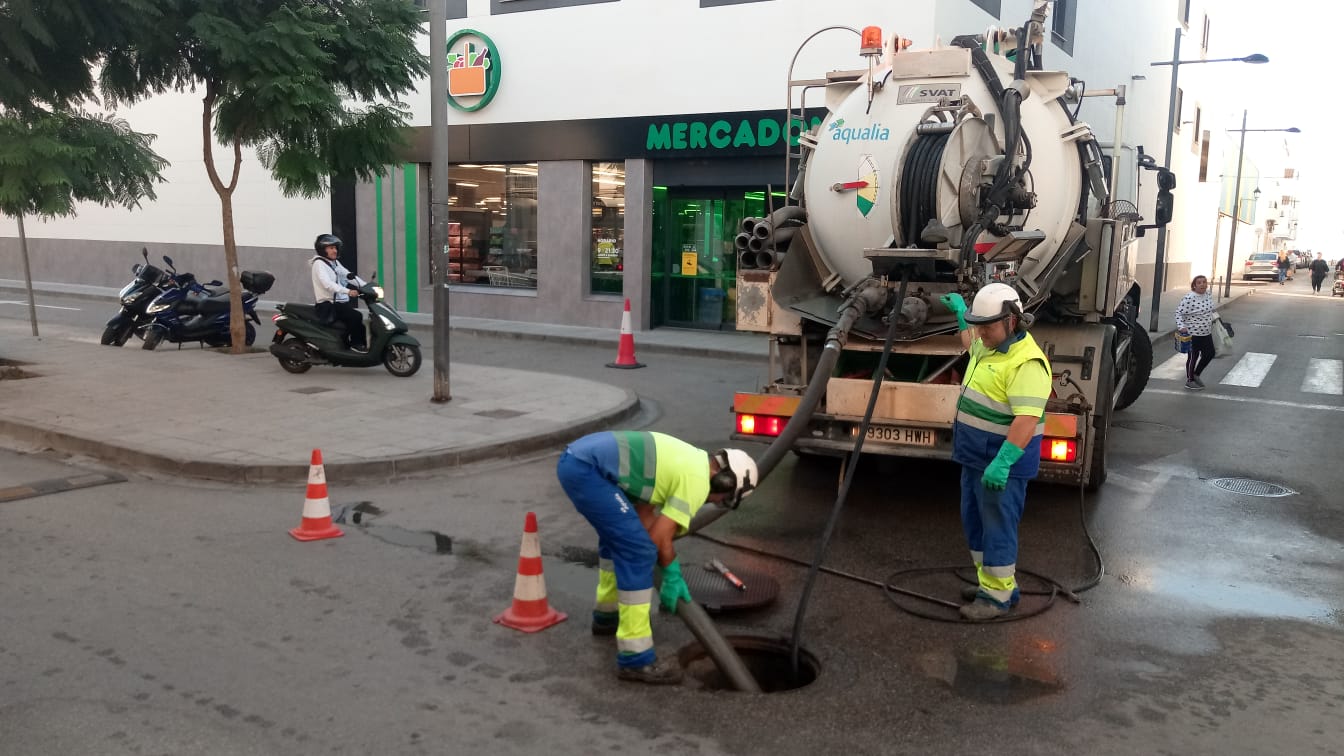 Aqualia realiza estos días un plan especial de limpieza de imbornales y tuberías de saneamiento de cara a las próximas lluv...
