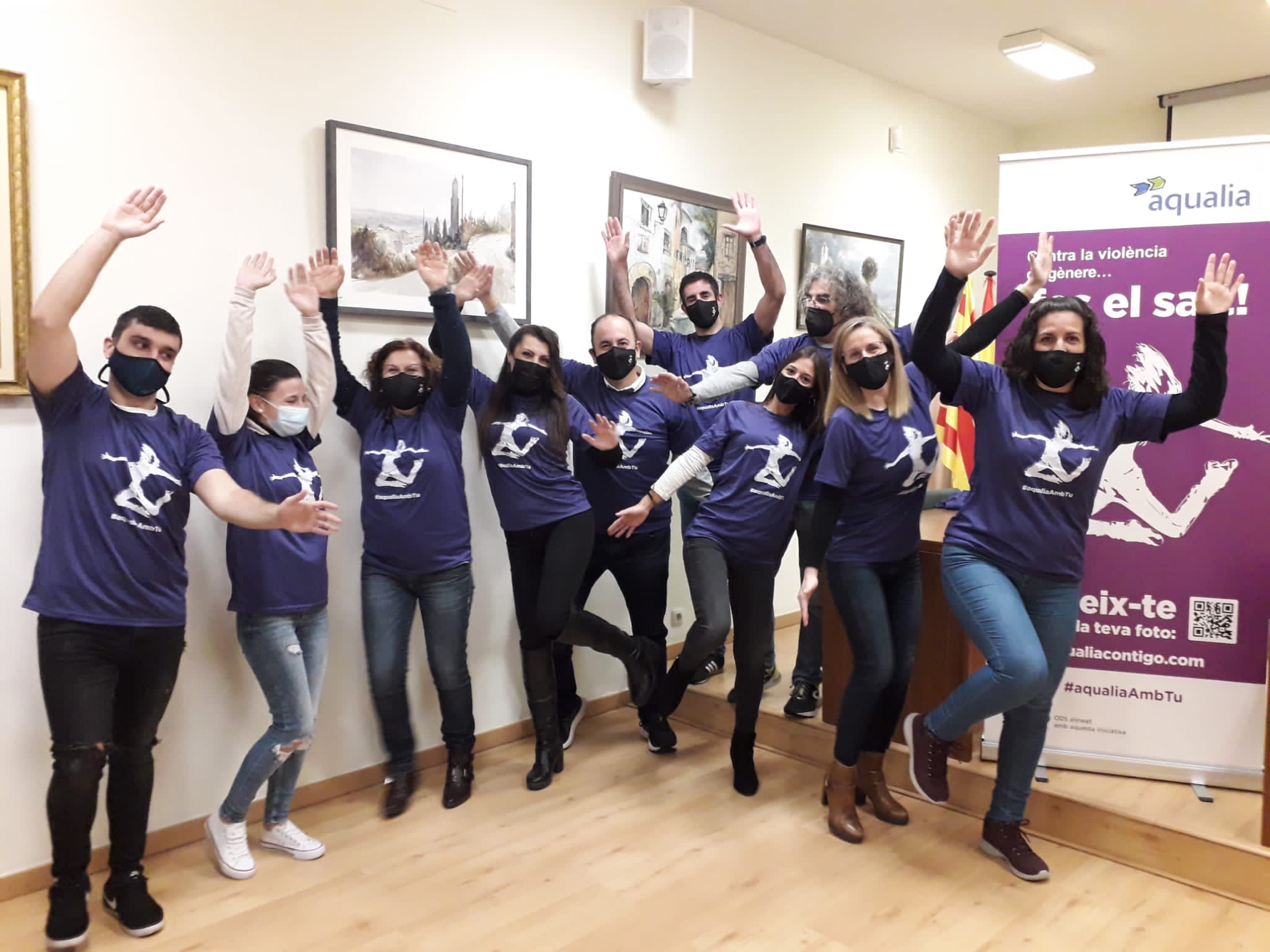 La concejala de Igualdad, los trabajadores del Ayuntamiento y el equipo docente de la escuela Joan Perucho se han adherido a la campaña contra la Violencia de Género organizada por Aqualia, la empresa que gestiona el Servicio Municipal de Aguas