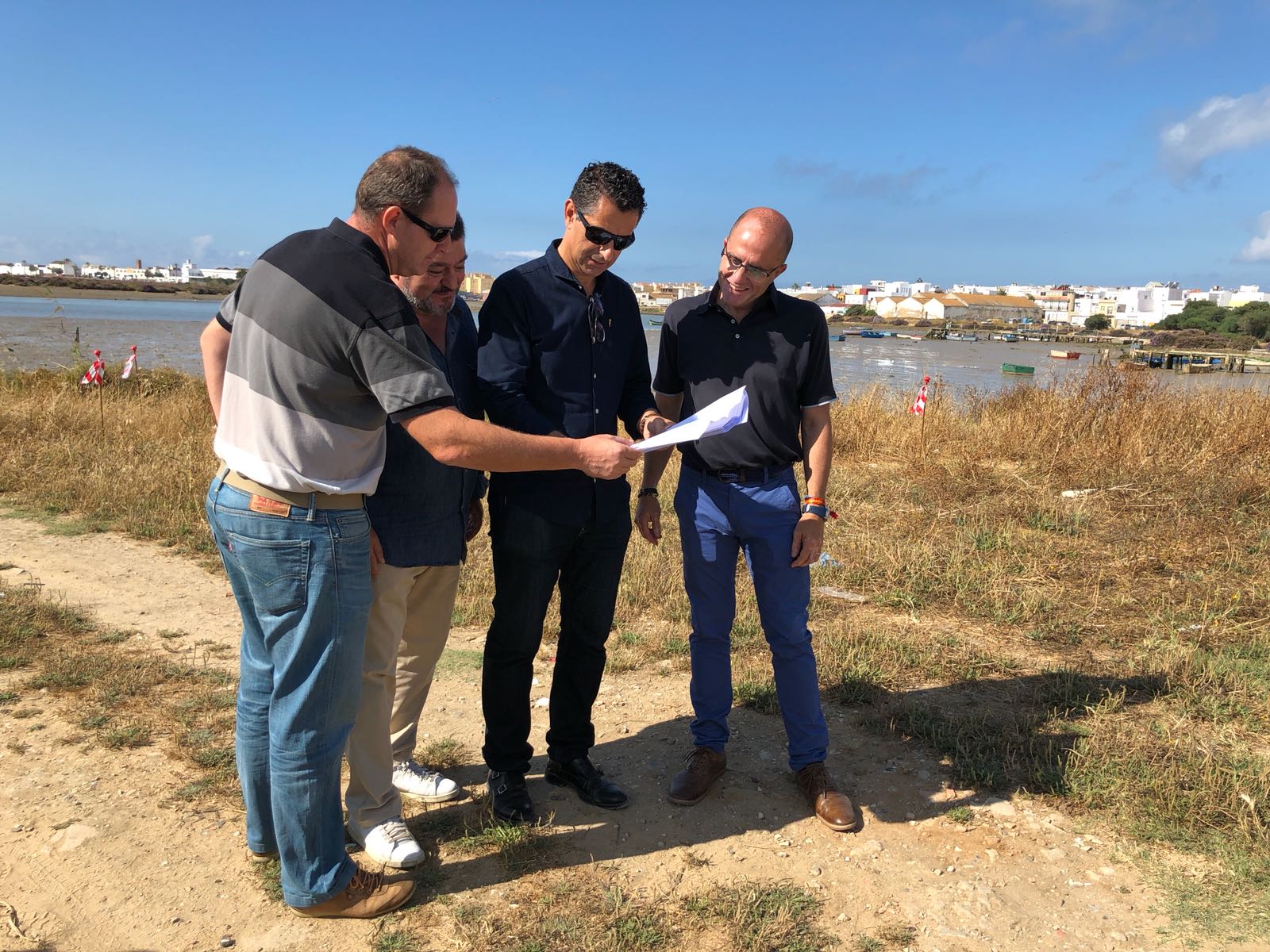 El alcalde de Barbate, Miguel Molina, el arquitecto municipal, José Antonio Albarrán, el jefe de Servicio de Aqualia en la localidad, Delfín Moreno, y el jefe de Obra de Aqualia, Sergio Mena, han estado hoy visitando la zona donde se llevarán a cabo las obras tras haberse firmado ya el acta de replanteo de las mismas con la Delegación de Costas-Medio Ambiente de la Junta de Andalucía.