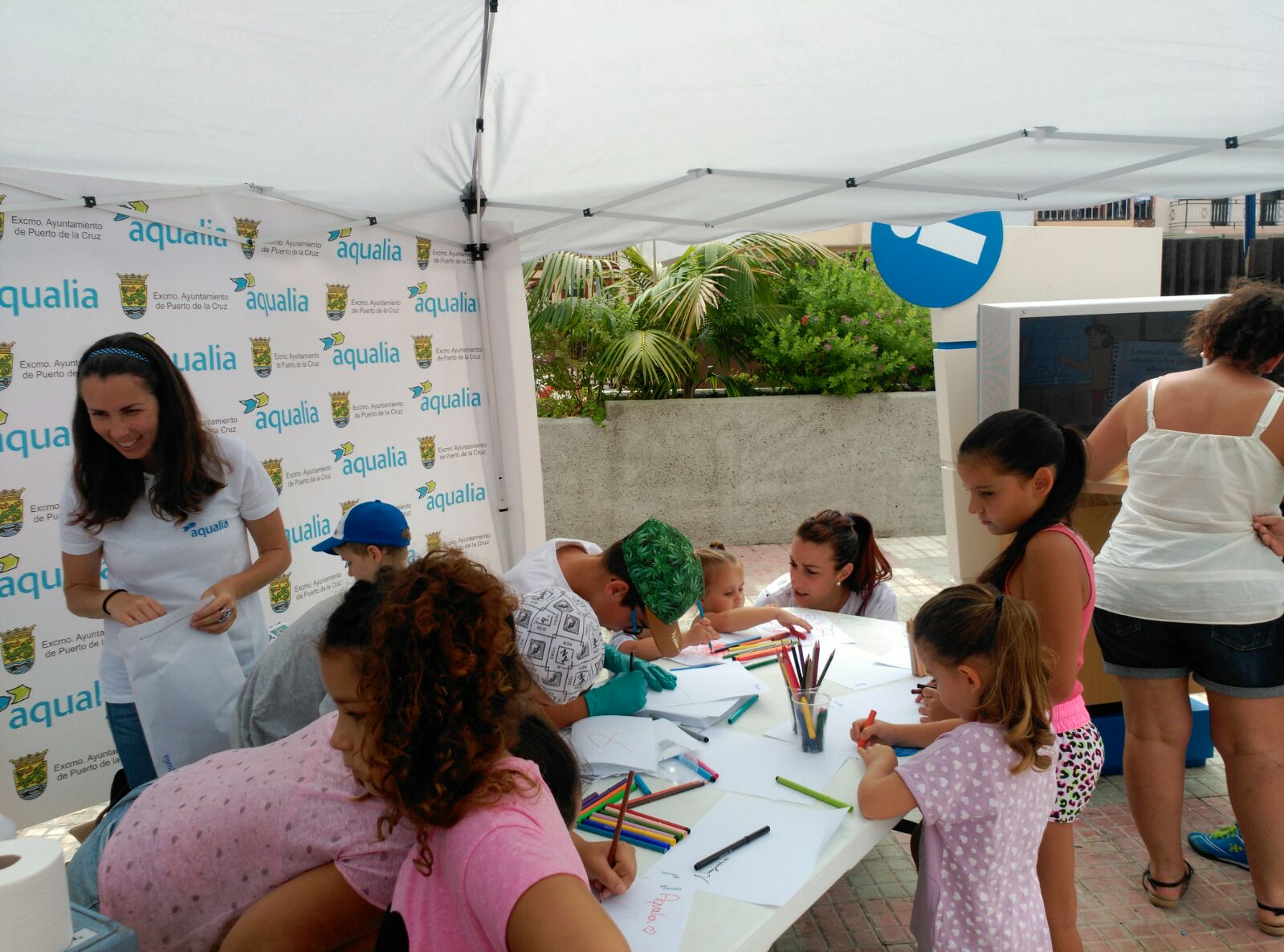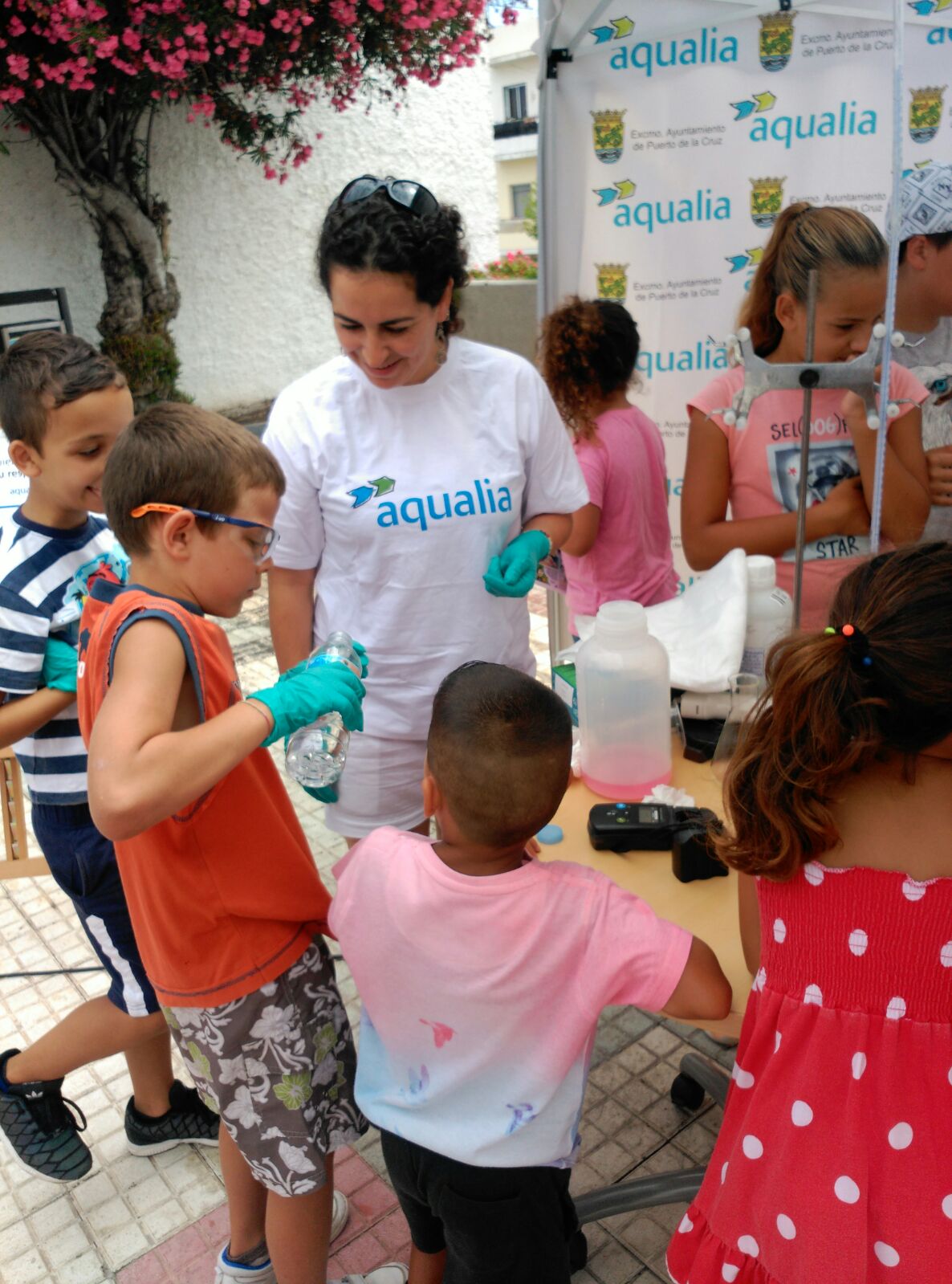 Aqualia, empresa concesionaria de la gestión del agua en el Puerto de la Cruz, ha organizado, el pasado sábado junto al Ayuntamiento y la comisión de fiestas del barrio de La Vera, talleres infantiles.