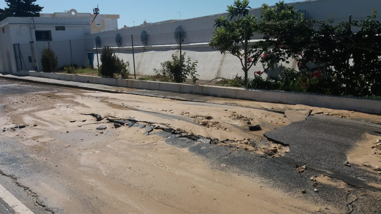 A las 12 de la mañana de hoy, viernes 2 de agosto, se ha producido una rotura fortuita en la tubería de abastecimiento principal de Rota, por la que se abastece a toda la ciudad. Esta rotura se ha producido en la avenida Carlos Cano, junto al depósito de agua, y ha provocado el corte del suministro a toda la localidad.