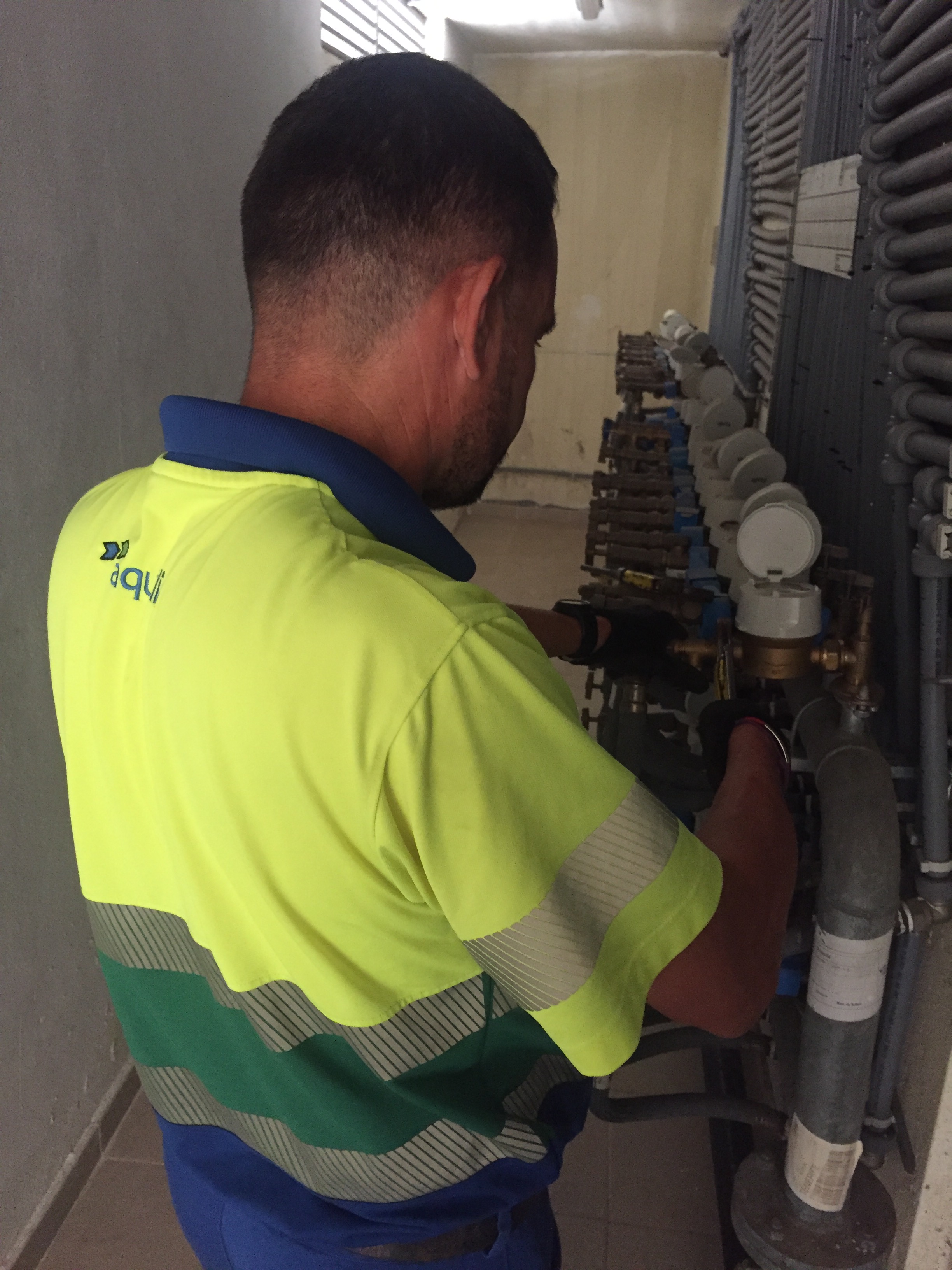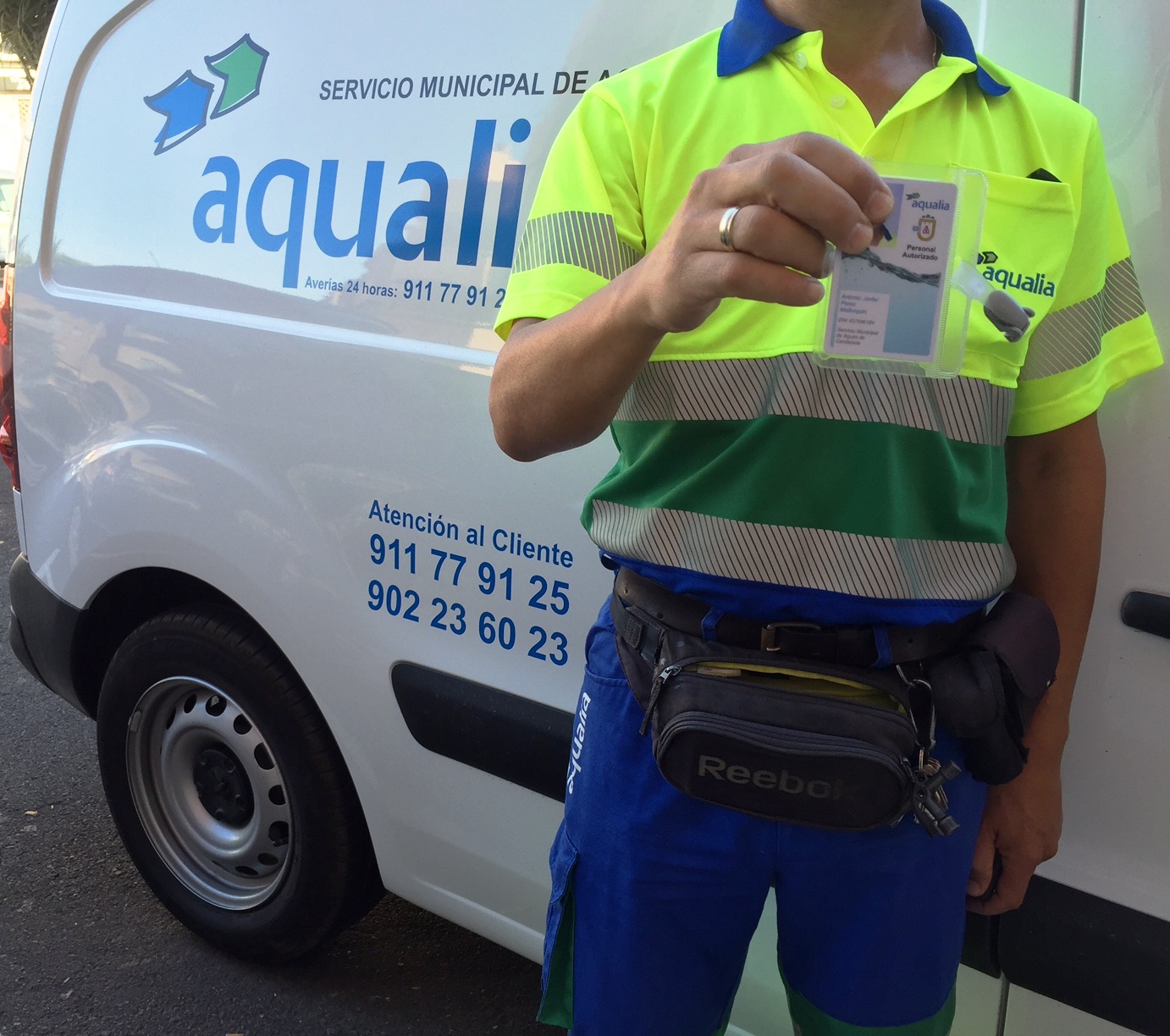 Los cambios de contador se llevan a cabo preferentemente en horario de tarde, y los realiza personal autorizado de la empresa que va debidamente acreditado como tal mediante una tarjeta identificativa. Esta tarjeta incluye en su anverso toda la información del trabajador (nombre, apellidos, DNI y foto de carnet), además del logo de Aqualia y el escudo del Ayuntamiento; en el reverso se indica reglamento municipal al que obedece la identificación.