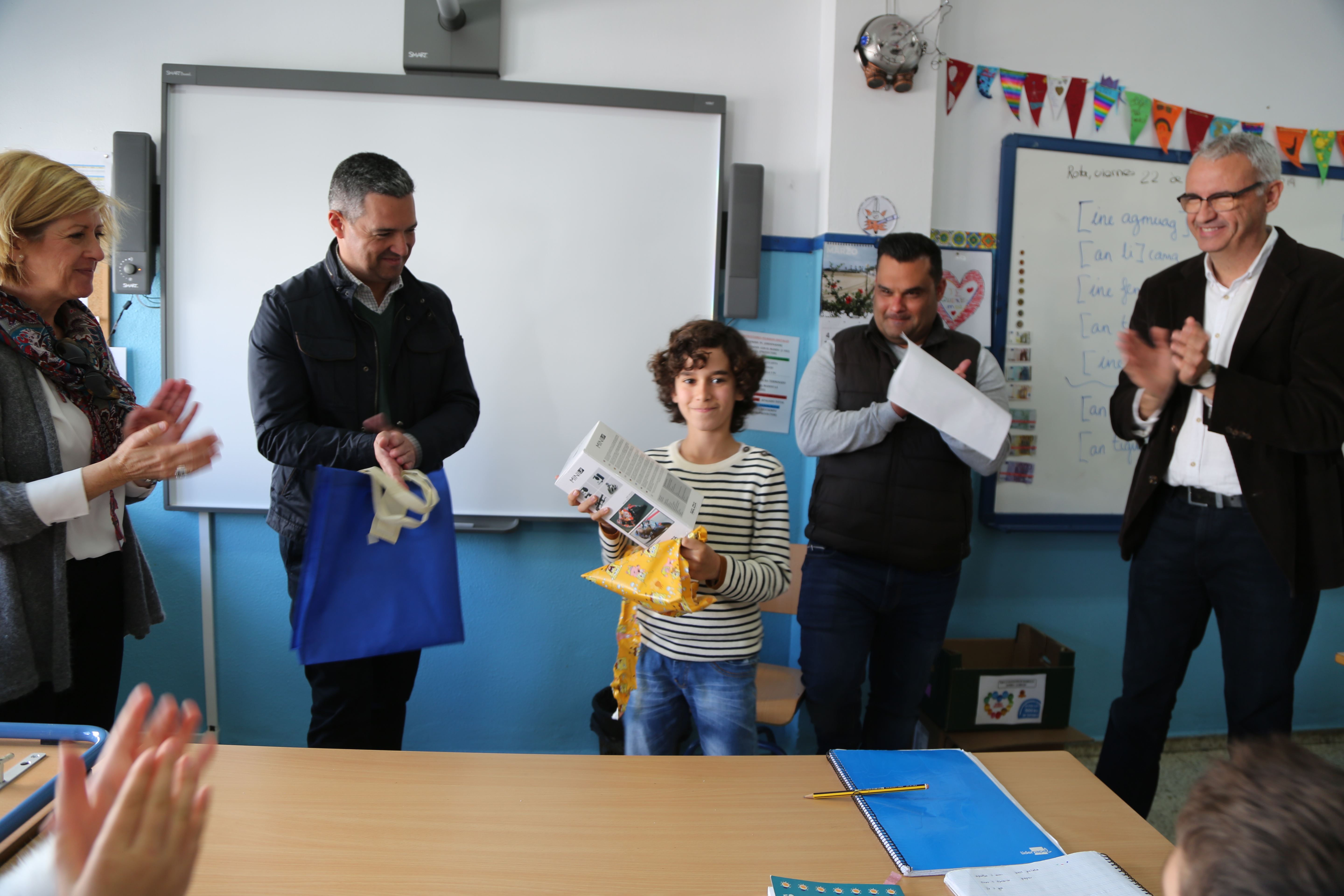 Mario Virella Rodríguez, del colegio Pozo Nuevo, y Alejandro Pizarro Peña, del colegio Maestro Eduardo Lobillo, han sido los dos finalistas roteños seleccionados por la organización para llevarse cada uno como premio una cámara digital acuática. Han recibido su premio en su colegio, rodeado de sus compañeros y profesores.