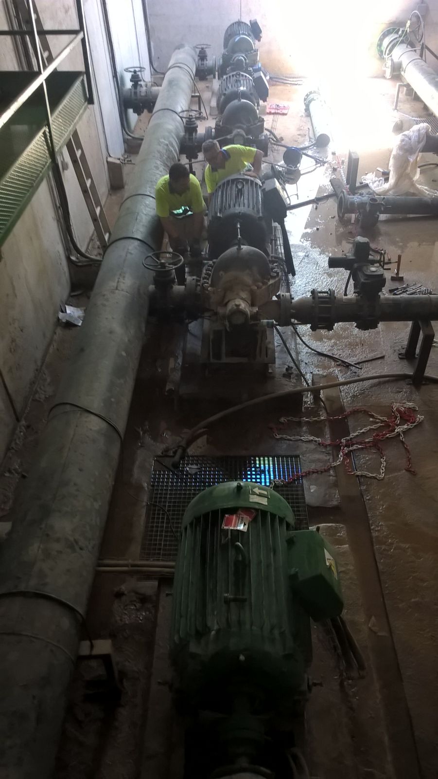Los trabajadores de Aqualia han evacuado el agua de la sala y han desmontado los motores para llevarlos a reparar, pero para esto se precisan entre 8 y 10 horas, lo que hará que hasta entonces no se pueda suministrar agua al municipio.