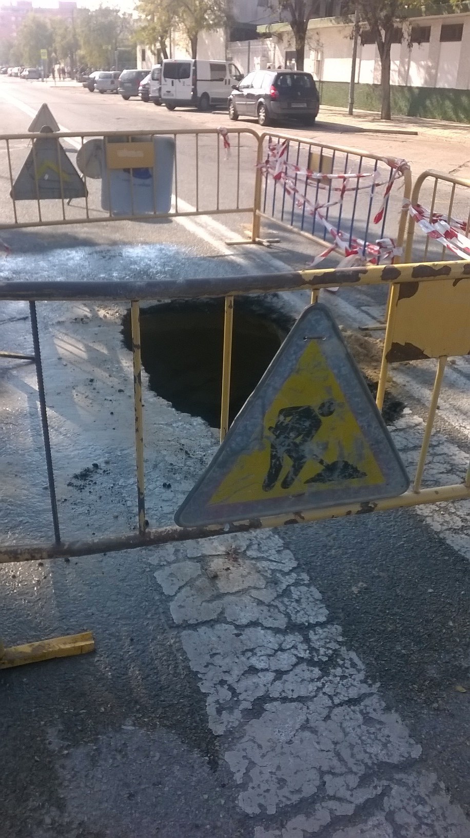 La degradación del colector principal de alcantarillado de Sanlúcar (denominado C-13) ha vuelto a originar un hundimiento de la calzada, en esta ocasión al comienzo de su trazado en la avenida Bajo de Guía, a la altura del polideportivo municipal.