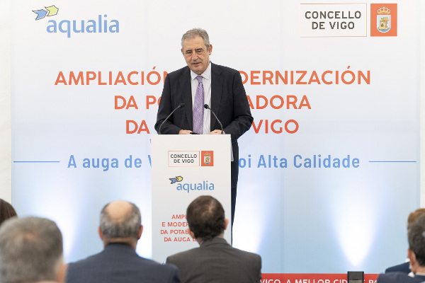 Esta mañana, el Concello de Vigo y Aqualia, empresa concesionaria del servicio municipal de aguas de Vigo, han colocado la primera piedra del proyecto de ampliación y modernización de la Estación Potabilizadora de Agua (ETAP) de la ciudad, ubicada en O Casal. Con una inversión estimada de 23 millones de euros, la construcción se acometerá a lo largo de los próximos 18 meses. Con esta nueva instalación, Vigo eleva su exigencia por encima de la nueva Directiva europea sobre el agua de consumo humano, en una clara apuesta de futuro. Se trata de un proyecto revolucionario, ya que el uso de membranas de ultrafiltración para la mejora de la calidad del agua en la potabilización del agua de una gran ciudad como Vigo supone un hito tecnológico.