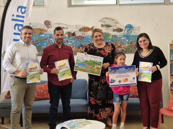 Al acto de entrega han acudido por parte del Ayuntamiento la alcaldesa Mari Brito y la concejala de Educación, Maeva Tendero, acompañadas por Moisés García y David Curbelo, representantes de Aqualia