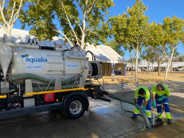 Aqua Campiña ha realizado una limpieza global de los imbornales y acometidas del ferial y zonas aledañas para evitar atascos en el sistema de drenaje